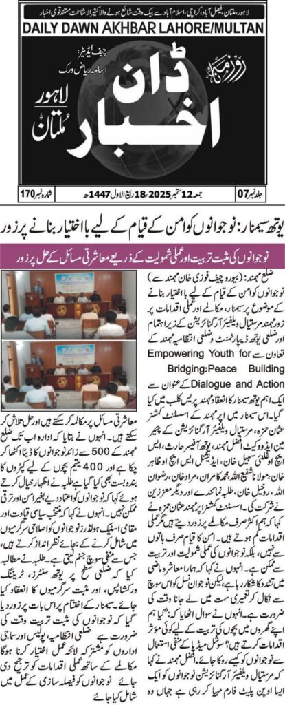 Under the auspices of Murstial Welfare Foundation, for the very first time, a Study Circle was held at Mohmand Press Club… in which a large number of people participated.